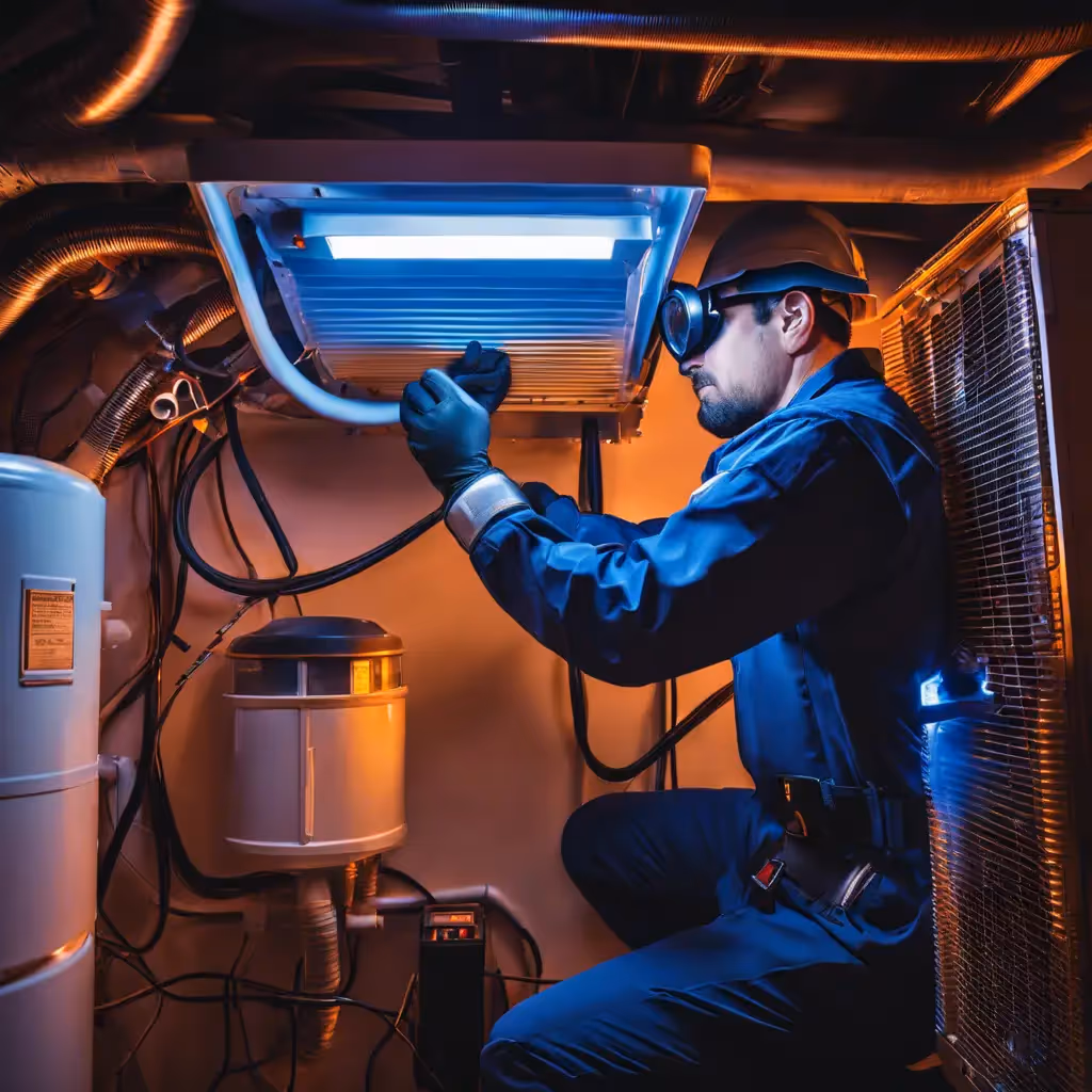 Ultraviolet (UV) lights are a powerful tool in HVAC systems for neutralizing bacteria, viruses, mold spores, and other microorganisms that thrive in moist environments like your AC coils and ducts. Our UV light installation service enhances air sanitation and protects your system from bio-growth, boosting its performance and longevity. It’s a low-maintenance, energy-efficient way to improve indoor air quality and reduce illness-causing agents.